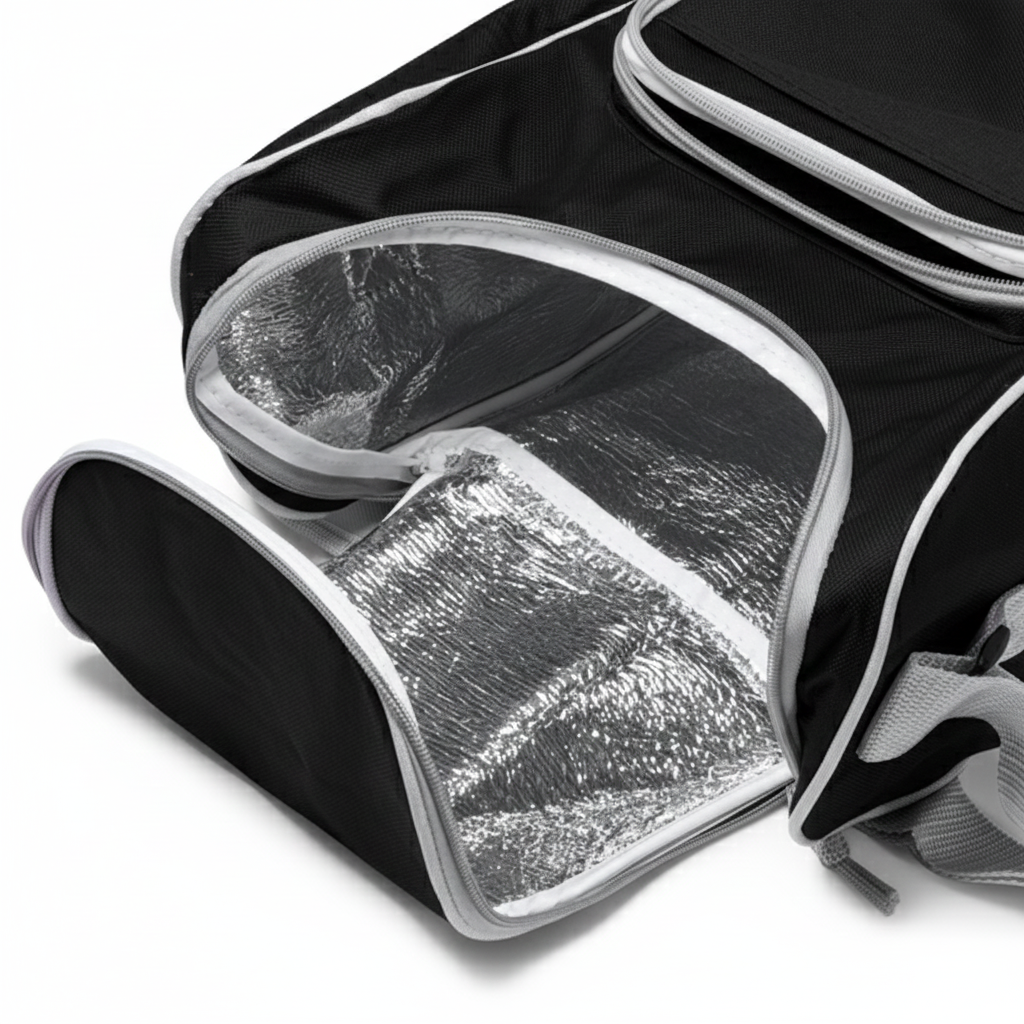 Geantă frigorifică multifuncțională, realizată din material durabil 600D, concepută pentru a menține alimentele și băuturile la temperatura optimă pentru o perioadă îndelungată. Dotată cu compartimente interioare izoterme spațioase și bine compartimentate, care permit organizarea eficientă a conținutului și păstrează prospețimea produselor.